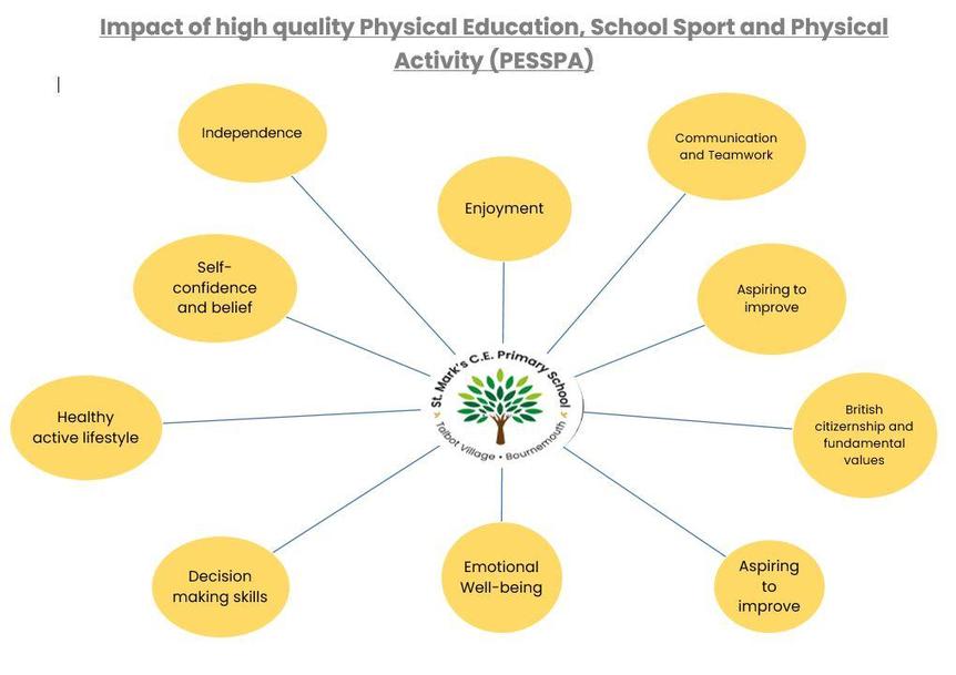 St. Mark’s Church of England Primary School fully adheres to the aims of the National Curriculum for Physical Education. This ensures that all children develop in a broad range of activities, are physically active for sustained periods of time and have opportunities to engage in competitive sports.  Our curriculum is inclusive and ensures that all children are fully included in physical activities.